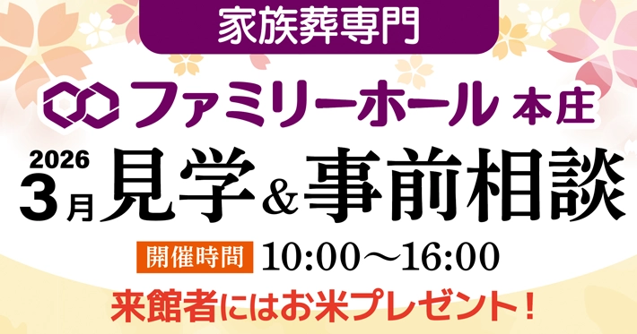 小規模な葬式~家族葬儀・一般葬まで希望に合わせた葬式の形式に対応いたします。完全自社施行でしっかり施主様に寄り添います。ファミリーホール本庄は、自社施設はもちろん、数多くの公営斎場とも提携していますので、ご要望に沿った葬儀場をご利用いただけます。