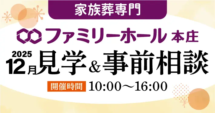 小規模な葬式~家族葬儀・一般葬まで希望に合わせた葬式の形式に対応いたします。完全自社施行でしっかり施主様に寄り添います。ファミリーホール本庄は、自社施設はもちろん、数多くの公営斎場とも提携していますので、ご要望に沿った葬儀場をご利用いただけます。