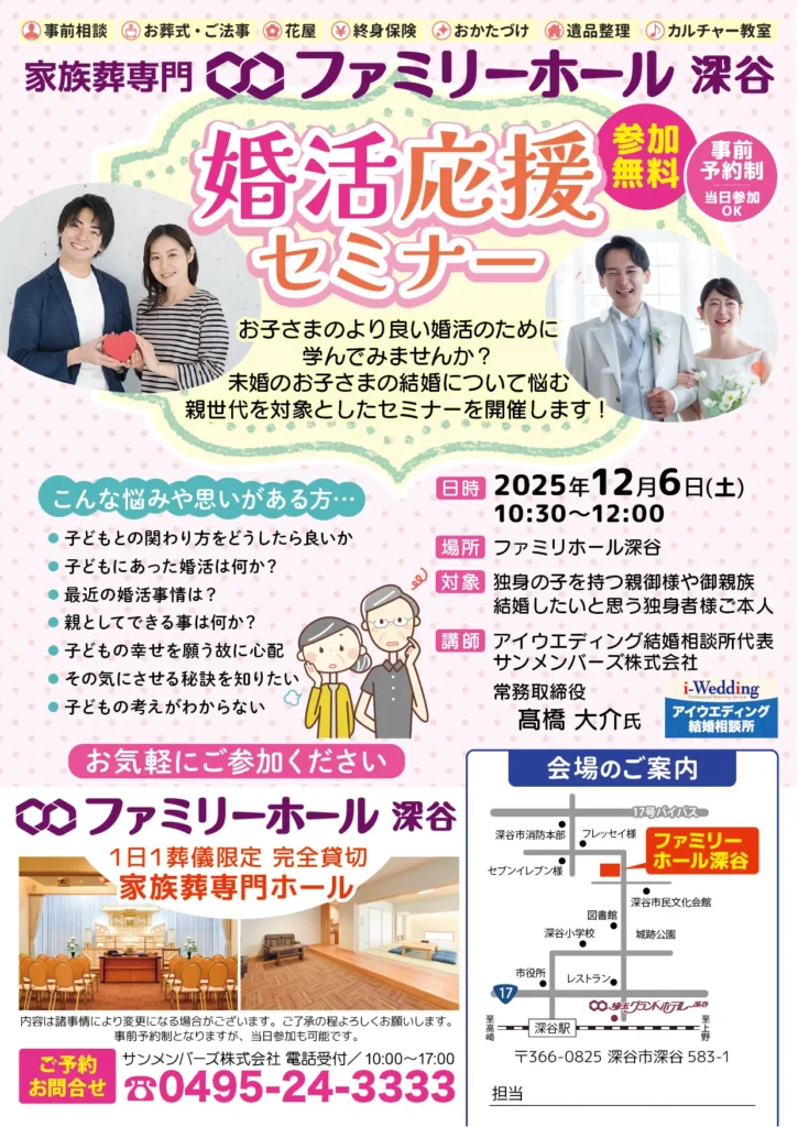 未婚のお子さまの結婚について悩む親世代を対象としたセミナーを開催します!