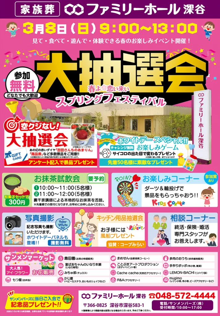 家族葬 ファミリーホール深谷にて『スプリングフェスティバル』を開催いたします。