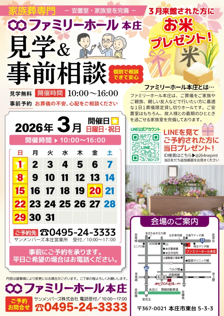 2026.3 家族葬ファミリーホール本庄 ホール見学&事前相談|本庄市