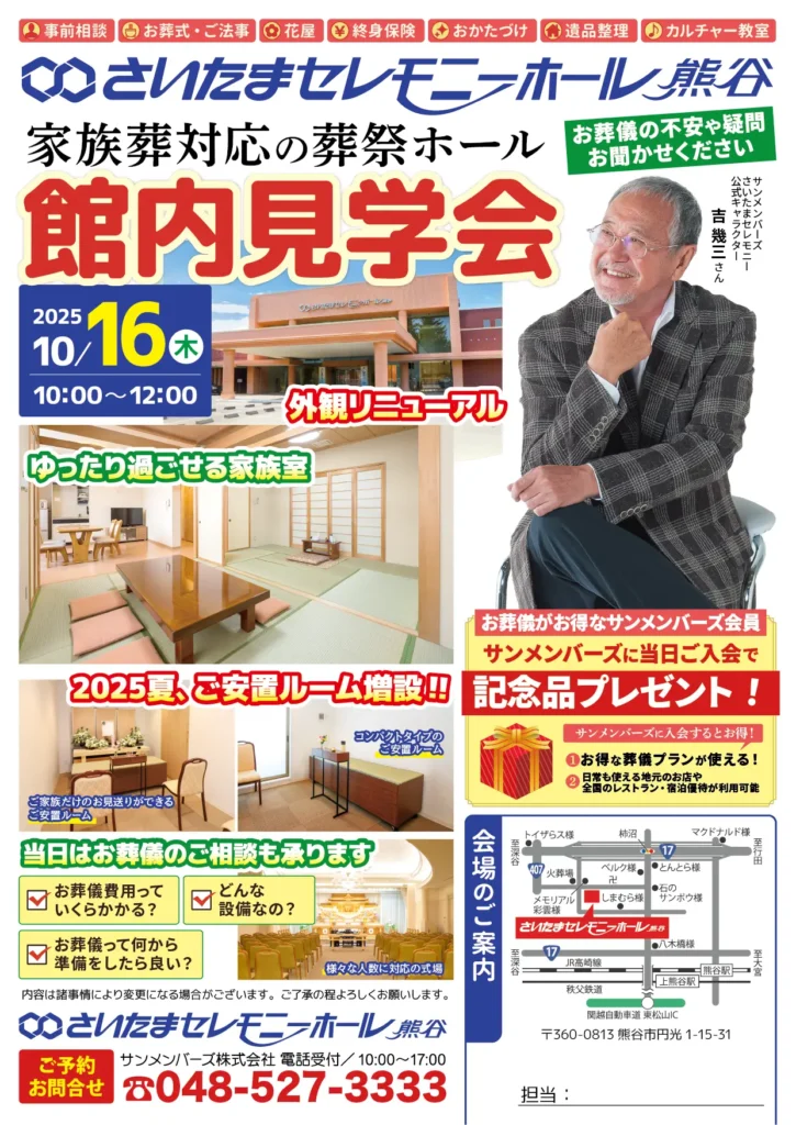 2025.10.16(木) さいたまセレモニーホール熊谷 館内見学会|熊谷市