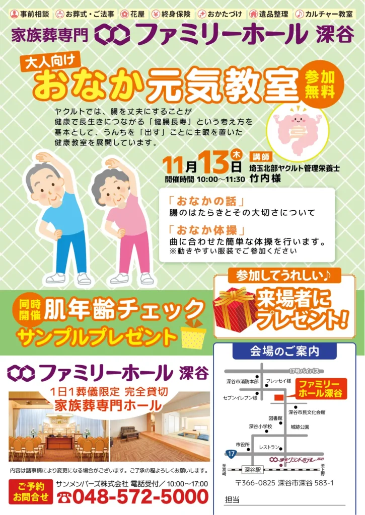 2025.11.13(木)ファミリーホール深谷 おなか元気教室|深谷市